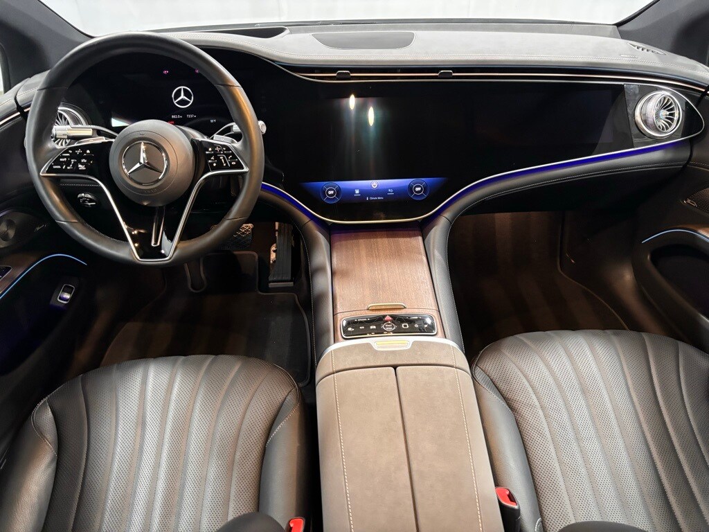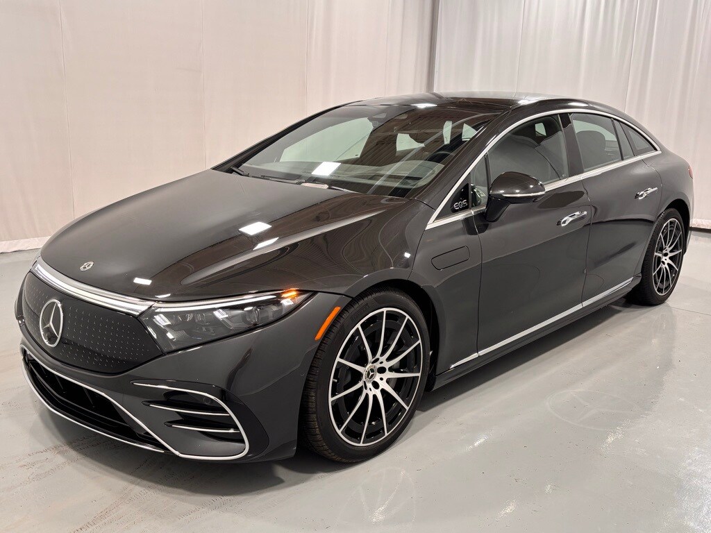 This Certified Pre-Owned 2022 Mercedes-Benz EQS 580 4MATIC® is Graphite Gray Metallic with Black Leather seats and Natural Grain Brown Walnut Wood trim. It is equipped with the Pinnacle Trim (Power Rear Seats, Rear Side Airbags, Comfort Armrests in Rear, Multicontour Front Seats with Massage, Heated/Ventilated Rear Seats, 4-Zone Climate Control, Wireless Charging in Rear), Heated Steering Wheel, MBUX Augmented Reality Head-Up Display, AMG Line Exterior, 21" AMG Multispoke Wheels with Black Accents, Apple CarPlay / Android Auto Compatibility, Active Distance Assist Distronic, Parktronic with Active Parking Assist, and much more!