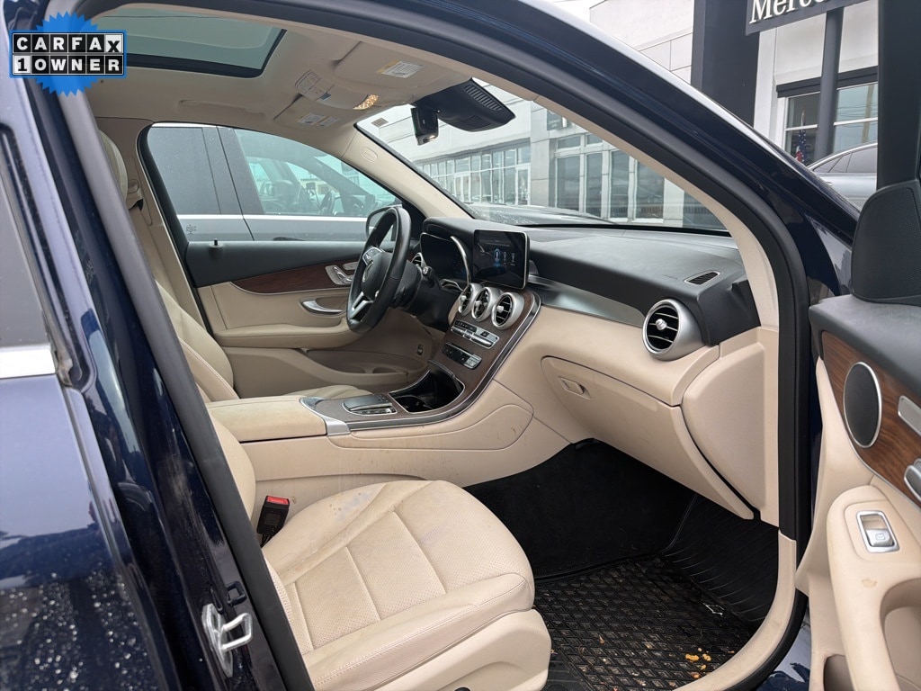 This Certified Pre-Owned 2022 Mercedes-Benz GLC 300 4MATIC® is Lunar Blue Metallic with Silk Beige MB-Tex seats and Natural Grain Walnut Wood trim. It is equipped with the Premium Package Lite (SiriusXM Radio, Multi-Color Ambient Lighting, Illuminated Door Sills), Panorama Sunroof, Heated Steering Wheel, 1`2.3" Digital Instrument Cluster, 18" 5-Spoke Wheels, Blind Spot Assist, Apple CarPlay / Android Auto Compatibility, Parktronic with Active Parking Assist, and much more!