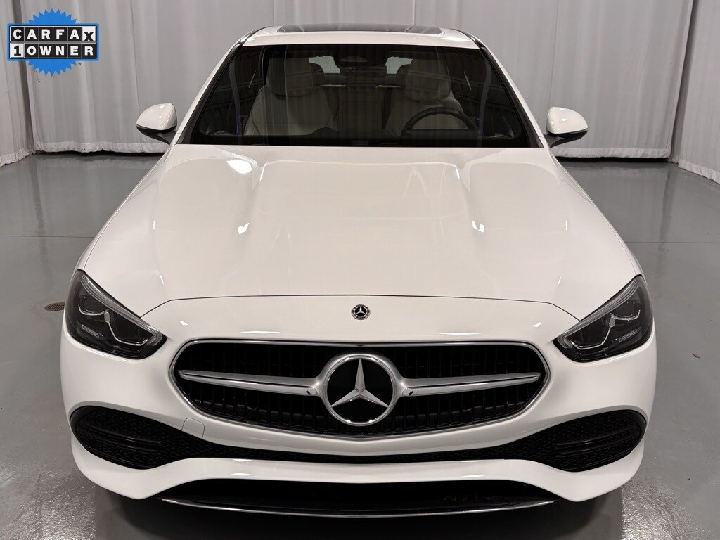 This Certified Pre-Owned 2023 Mercedes-Benz C 300 4MATIC® is Polar White with Macchiato Beige MB-Tex seats and Natural Grain Walnut Wood trim. It is equipped with the Heated Steering Wheel, SiriusXM Radio, 18" Multispoke Wheels, Apple CarPlay / Android Auto Compatibility, Garage Door Opener, Blind Spot Assist, Glass Sunroof, 12.3" Digital Instrument Cluster, Dual-Zone Climate Control, LED Headlights, Advanced Alarm with Parking Collision Detection, Heated Front Seats, Multi-Color Ambient Lighting, and much more!