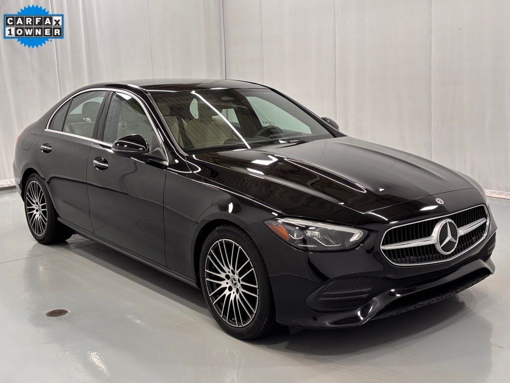 This Certified Pre-Owned 2023 Mercedes-Benz C 300 4MATIC® is Black with Macchiato Beige MB-Tex seats and Natural Grain Walnut Wood trim. It is equipped with the Panorama Sunroof, Heated Steering Wheel, SiriusXM Radio, 18" Multispoke Wheels, Wireless Apple CarPlay / Android Auto Compatibility, Garage Door Opener, Blind Spot Assist, 12.3" Digital Instrument Cluster, Dual-Zone Climate Control, LED Headlights, Heated Front Seats, 64-Color Ambient Lighting, and much more!
