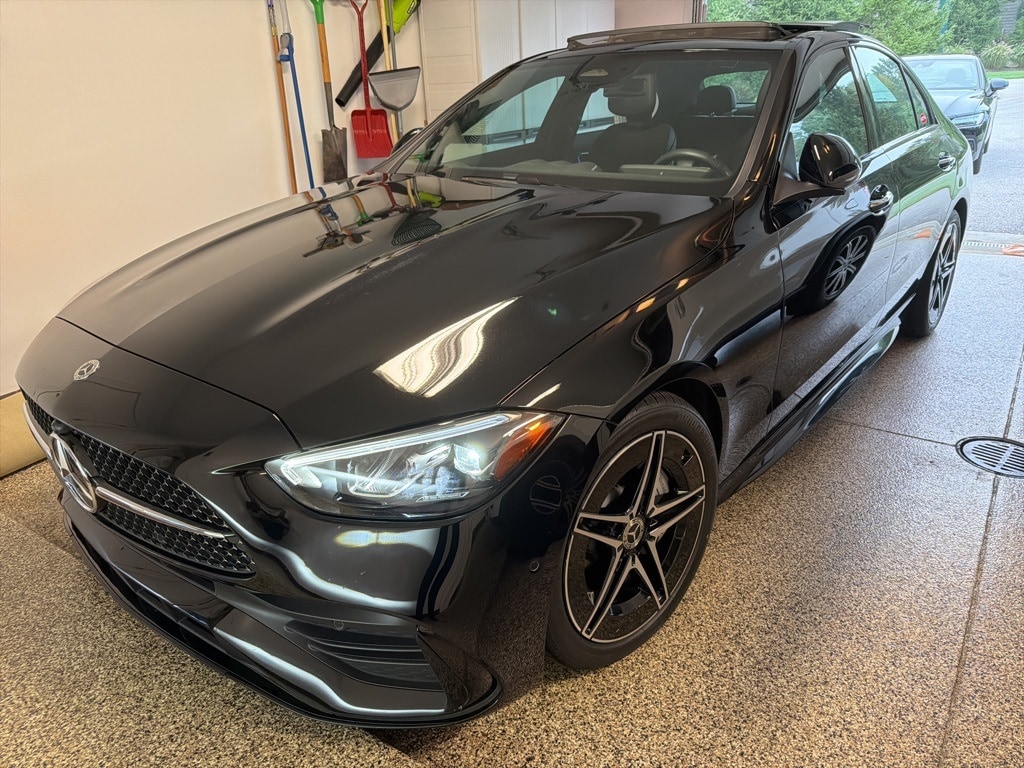 This Certified Pre-Owned 2024 Mercedes-Benz C 300 4MATIC® is Black with AMG Black MB-Tex seats and Silver Diamond Pattern trim. It is equipped with the Exclusive Line (Burmester® Surround Sound System, Guard 360 Vehicle Protection Plus, MBUX Navigation System, Illuminated Door Sills), AMG Line Package (Sport Suspension, Diamond Grille, Sport Seats, AMG Interior/Exterior Styling, Sport Brake System with "Mercedes-Benz" Lettering), Heated/Ventilated Front Seats, Panorama Sunroof, Advanced USB Package, Winter Package (Heated Steering Wheel), 18" AMG 5-Spoke Wheels with Black Accents, Rear Body Color Spoiler, Apple CarPlay / Android Auto Compatibility, and much more!