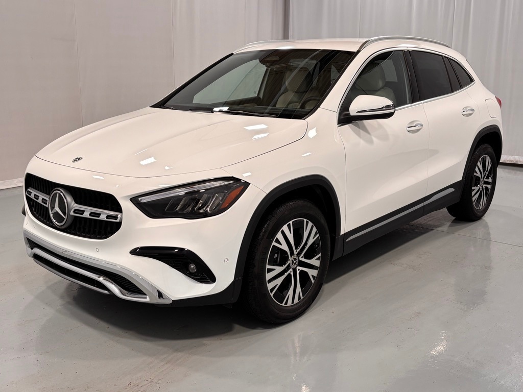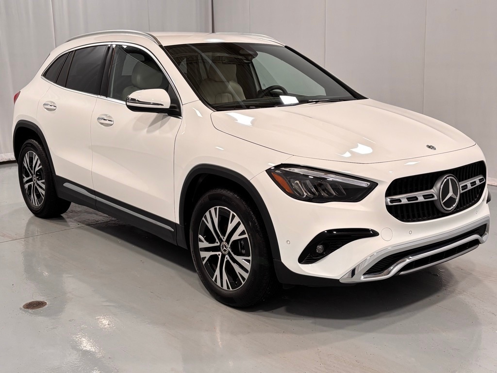 This Certified Pre-Owned 2025 Mercedes-Benz GLA 250 4MATIC® is Polar White with Macchiato Beige MB-Tex seats and Star Pattern trim. It is equipped with the Exclusive Package (Advanced Sound System, MBUX Navigation Premium, Illuminated Door Sills), Driver Assistance Package (Active Distance Assist Distronic, Active Steering Assist, Active Lane Keeping Assist, Active Speed Limit Assist), 18" Twin 5-Spoke Aero Wheels, Winter Package (Heated Steering Wheel), Body Color Roof Spoiler, Apple CarPlay / Android Auto Compatibility, and much more!