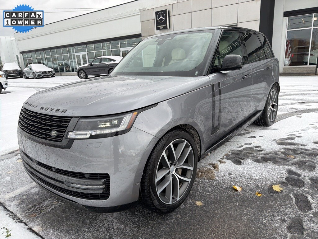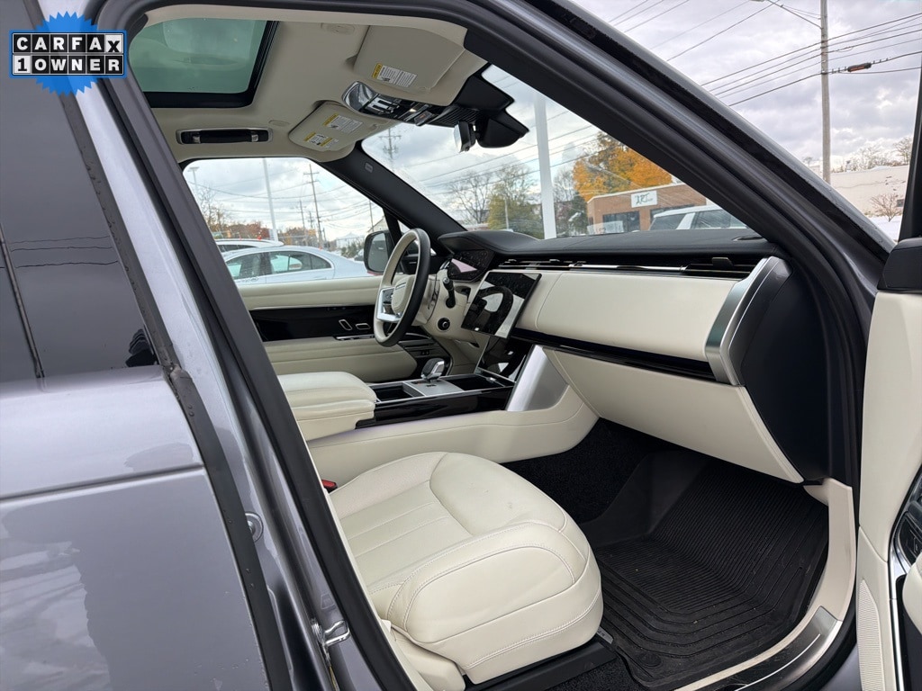 This 2025 Land Rover Range Rover SE AWD is Eiger Gray Metallic with Perlino Semi-Aniline Leather seats. It is equipped with the 22" Style 5127 Diamond Turned Wheels with Satin Dark Grey Contrast, Cold Climate Pack (Heated Washer Jets, Heated Windscreen), Shadow Pack, Black Contrast Roof, Gloss Grand Black Veneer, 24-Way Heated/Cooled/Massaging Front Seats, Emergency Pack, Interior Protection Pack, Wheel Protection Pack, Range Rover Handover Pack, LED Headlights, 13.1" Pivi Pro Infotainment System, Wireless Apple CarPlay / Android Auto Compatibility, 3D Surround View Camera, and much more!