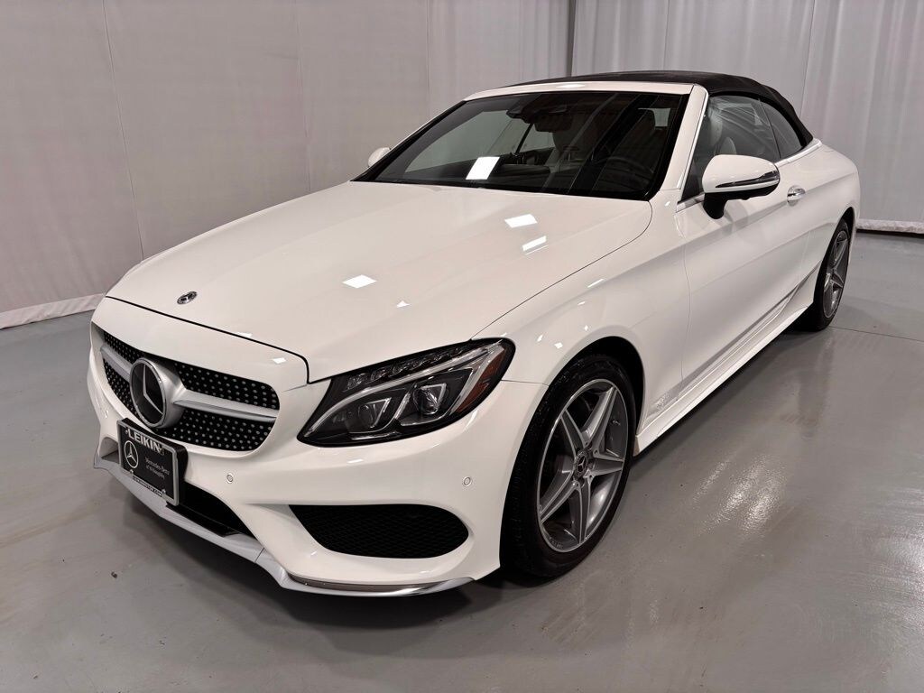 This 2018 Mercedes-Benz C 300 Cabriolet 4MATIC® is Polar White with Crystal Grey MB-Tex seats and Natural Grain Black Ash Wood trim.m It is equipped with the AMG Line Package (Diamond Grille, AMG Exterior Styling), Driver Assistance Package (Distronic Plus with Steering Assist, Active Blind Spot Assist, Speed Limit Assist, Active Lane Keeping Assist), Multimedia Package (COMAND Navigation, Power Folding Mirrors, Auto Dimming Driver and Rearview Mirrors), Advanced Lighting Package (12-Color Interior Ambient Lighting, Active Curve Illuminating Full LED Headlights, Illuminated Door Sill Panels), Premium Package (SiriusXM Radio, Burmester® Surround Sound System), Heated Steering Wheel, 18" AMG 5-Spoke Wheels, and much more!