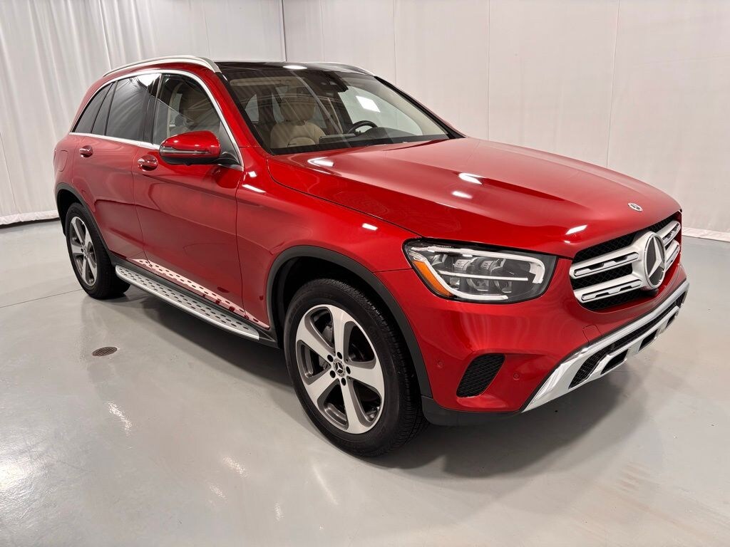 This Certified Pre-Owned 2022 Mercedes-Benz GLC 300 4MATIC® is Cardinal Red Metallic with Silk Beige MB-Tex seats and Natural Grain Walnut Wood trim. It is equipped with the Multimedia Package Lite (MBUX Navigation Plus, Speed Limit Assist), Premium Package Lite (SiriusXM Radio, Multi-Color Ambient Lighting, Illuminated Door Sills), Panorama Sunroof, Heated Steering Wheel, 12.3" Digital Instrument Cluster, 19" 5-Spoke Wheels, Brushed Aluminum Running Boards, Heat & Noise Insulating Front/Side Glass, Surround View System, Rear Chrome Trim, Apple CarPlay / Android Auto, and much more!
