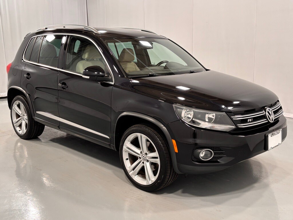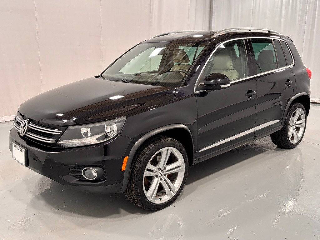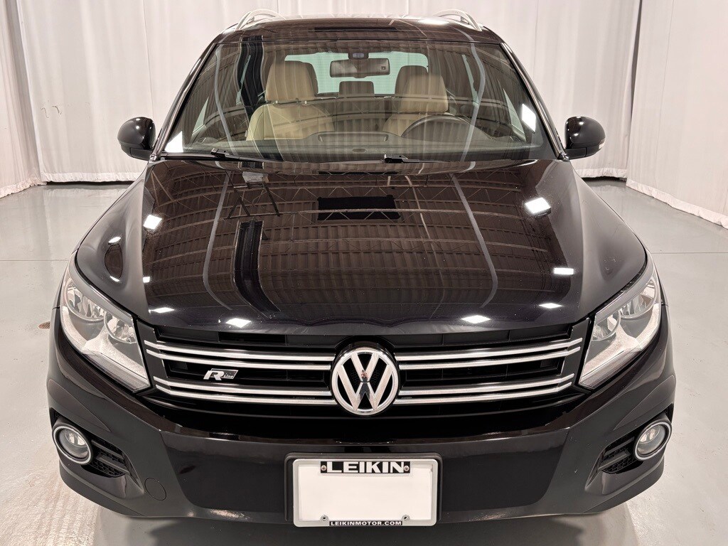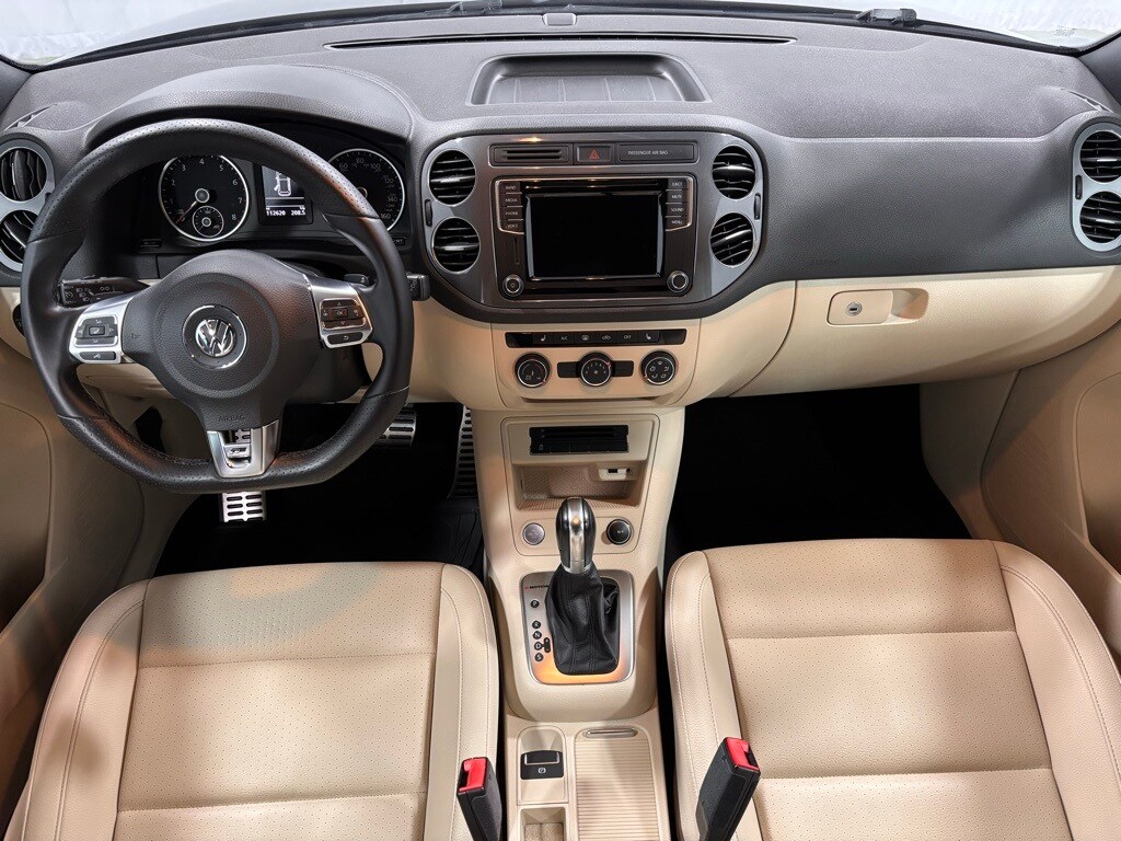 This 2016 Volkswagen Tiguan R-Line 4Motion AWD is Deep Black Pearl with Sandstone Beige V-Tex Leatherette seats. It is equipped with 19" Mallory Alloy Wheels, Heated Front Bucket Seats, AM/FM/HD/CD Radio with Bluetooth USB and Aux In, Rain Sensing Windshield Wipers, Rearview Camera, SiriusXM Radio, Keyless Access with Push Button Start, Power Front Seats, Automatic Headlights, Heated Exterior Mirrors, and much more!