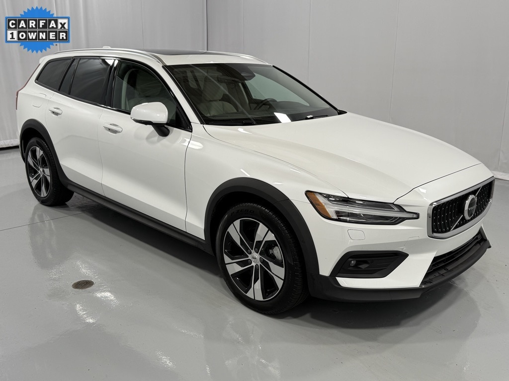 This Certified Pre-Owned 2023 Volvo V60 Cross Country B5 Plus AWD is Crystal White Metallic with Blond Leather seats. It is equipped with the Climate Package (Headlamp Cleaners, Heated Rear Seats, Heated Steering Wheel), 18" Alloy Wheels, Apple CarPlay Compatibility, Laminated Panoramic Moonroof with Power Sunshade, Adaptive Cruise Control with Pilot Assist, Heated Front Seats, Front/Rear Park Assist, 360 Surround View Camera, Active Bending LED Headlights, and much more!