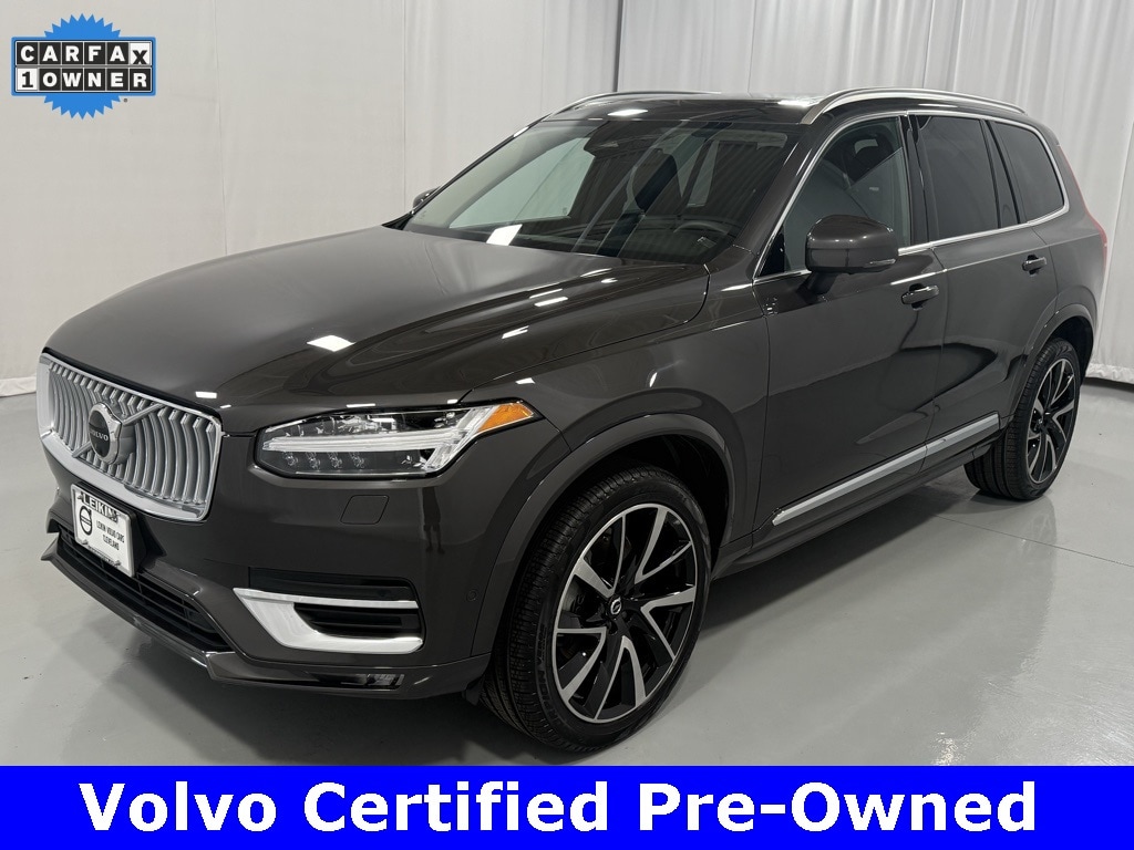 This Certified Pre-Owned 2023 Volvo XC90 B6 Plus 6-Passenger AWD is Platinum Gray Metallic with Charcoal Leather seats. It is equipped with 21" 5-V Spoke Black Diamond Cut Alloy Wheels, Harman/Kardon Premium Sound, 360 Surround View Camera, Heated Front/Rear Seats, Heated Steering Wheel, Laminated Panoramic Moonroof with Power Sunshade, Adaptive Cruise Control with Pilot Assist, Blind Spot Information System (BLIS), Apple CarPlay Compatibility, and much more!
