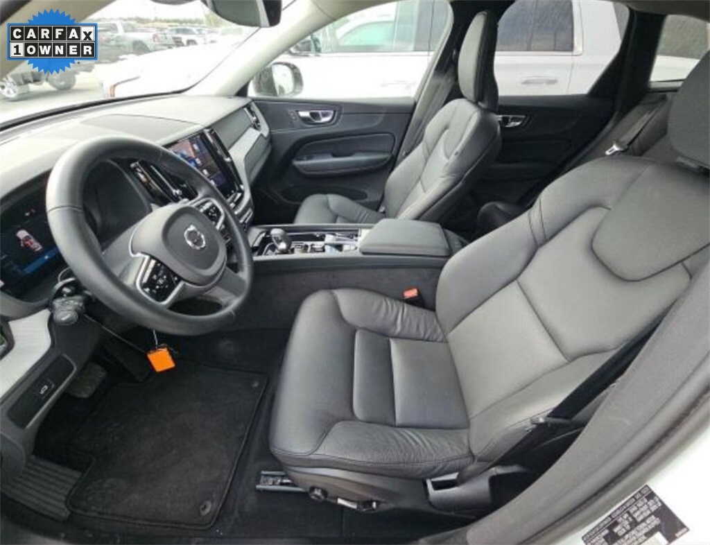 This Certified Pre-Owned 2025 Volvo XC60 B5 Plus AWD is Crystal White Metallic with Charcoal Leather seats. It is equipped with the Climate Package (Heated Rear Seats, Heated Steering Wheel, Headlamp Cleaners), 19" Diamond Cut Alloy Wheels, Adaptive Cruise Control with Pilot Assist, 360 Surround View Camera, Active Bending LED Headlights, Blind Spot Information System (BLIS), Apple CarPlay / Android Auto Compatibility, Laminated Panoramic Sunroof with Power Sunshade, and much more!
